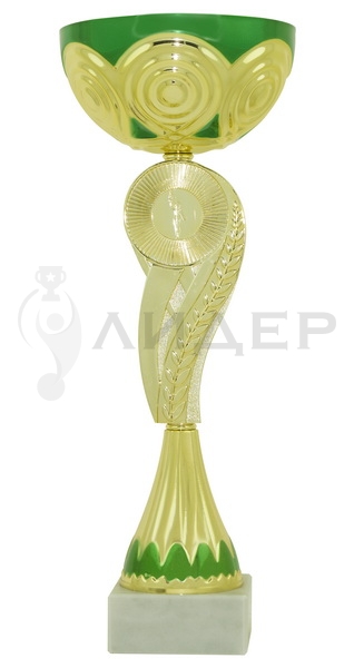 Кубок серии Стандарт.Цвет кубка-"золото"/зеленый. Чаша металлическая. Основание белый мрамор. Основание кубка можно укомплектовать табличкой с логотипом/надписью из металла.