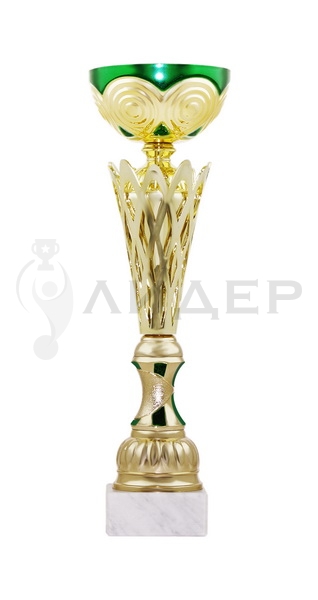 Кубок серии Стандарт.Цвет кубка-"золото"/зеленый. Чаша металлическая. Основание белый мрамор. Основание кубка можно укомплектовать табличкой с логотипом/надписью из металла.