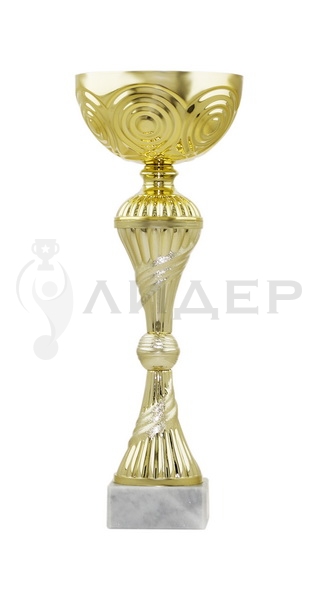 Цвет кубка-"золото". Чаша металлическая. Основание белый мрамор. Основание кубка можно укомплектовать табличкой с логотипом/надписью из металла.