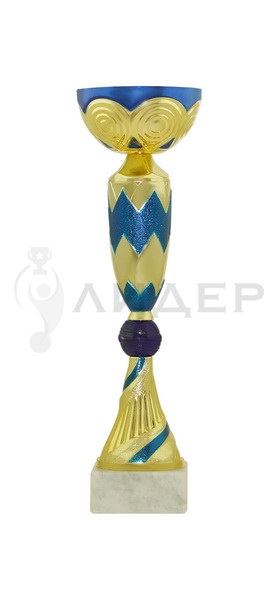Цвет кубка-"золото"/синий. Чаша металлическая. Основание белый мрамор. Основание кубка можно укомплектовать табличкой с логотипом/надписью из металла.