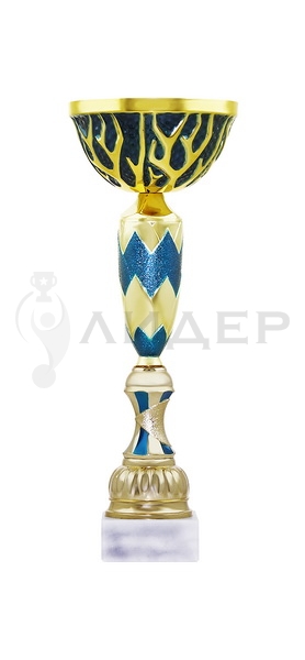 Кубок серии Стандарт.Цвет кубка-"золото"/синий. Чаша металлическая. Основание белый мрамор. Основание кубка можно укомплектовать табличкой с логотипом/надписью из металла.