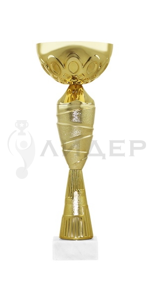 Цвет кубка-"золото". Чаша металлическая. Основание белый мрамор. Основание кубка можно укомплектовать табличкой с логотипом/надписью из металла.
