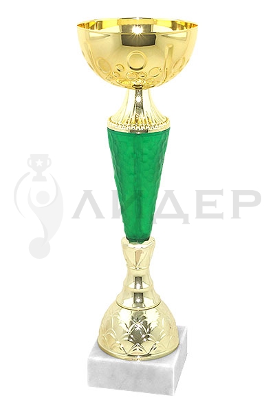 Цвет кубка-"золото"/зеленый. Чаша металлическая. Основание белый мрамор. Основание кубка можно укомплектовать табличкой с логотипом/надписью из металла.